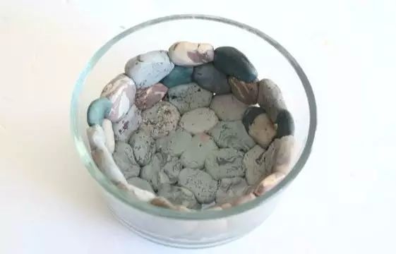 1.将小石头们尽量排成碗底的形状,然后用防水胶水粘合接缝处~