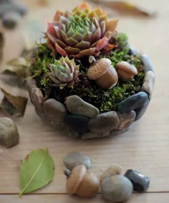 或者可以在花盆里点缀几块小石子,让你的盆栽独一无二~