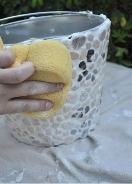 4.用湿润的海绵将石头表面的泥浆擦净就完成啦~