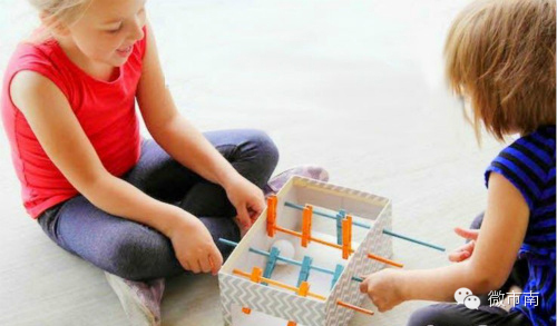 自制桌面足球 男生女生都会喜欢的游戏,鞋盒,木棒,木夹,超简单就能完成。 |