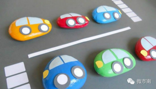 石头变身小汽车 在石头上涂色,贴上彩纸车窗和轮子,这是孩子独一无二的汽车玩具。 |