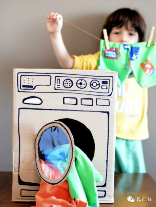 纸箱变身洗衣机 过家家的玩具哪个孩子不爱,你会选择动辄几百的现成玩具,还是自己动手做一个?真的不难,随手找个小纸箱就搞定啦! |