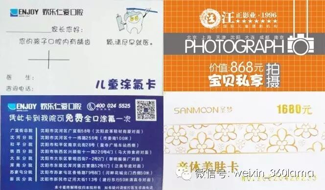 欢乐仁爱口腔儿童涂氟卡、汪正摄影卡、圣梦亲体美肤卡各一张