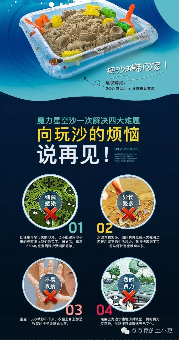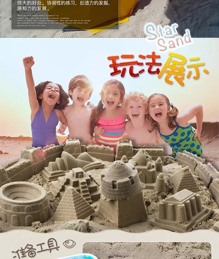 那么多沙子,我为什么选择美乐星空沙?它取材自天然海沙,有真实的细腻触感,干净不粘手还拥有非常强的可塑性,关键是非常容易打理哦!附送16个玩沙小工具,炫酷造型任性搭!关键是不用远途去沙滩暴晒,直接就能沙滩搬回家玩。
