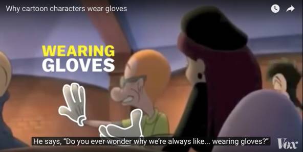 小时候在小神龙俱乐部看动画片的时候,我就一直很费解啊,为什么卡通形象都要带白手套呢?这个问题甚至在《极限高飞》中都有官方吐槽: