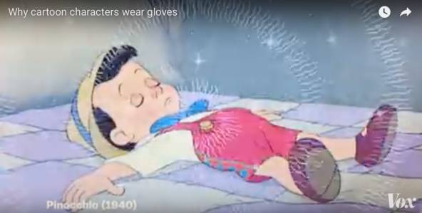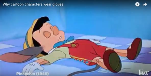 后来手套甚至被符号化。在动画电影《匹诺曹》中,作为玩偶的匹诺曹是有手套的,但是变成人之后就没有了