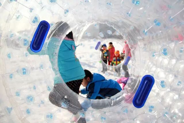 ☞☞专门为小朋友们设计的游艺项目。雪地里,随着球体做360度旋转,体验失重与旋转的双重刺激,让孩子们尽情嬉戏。