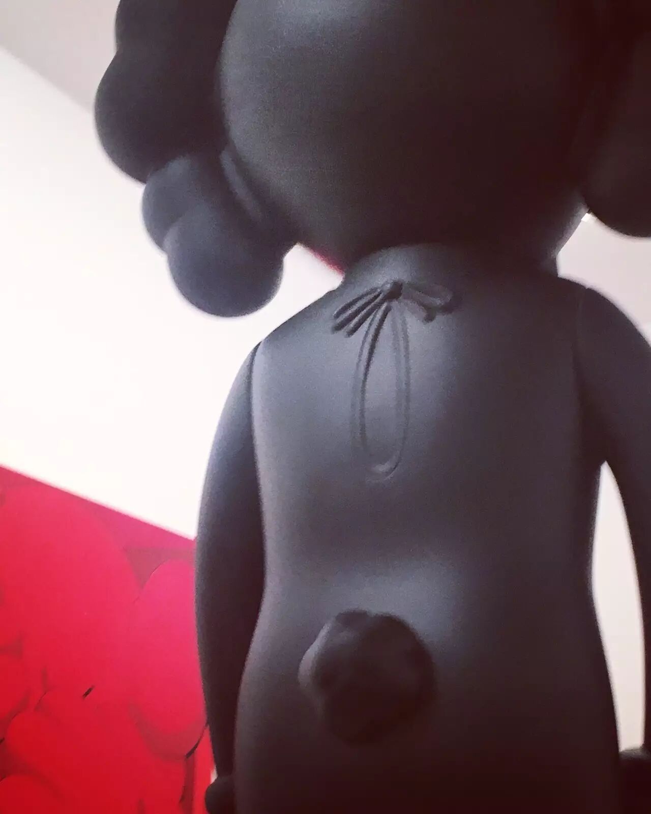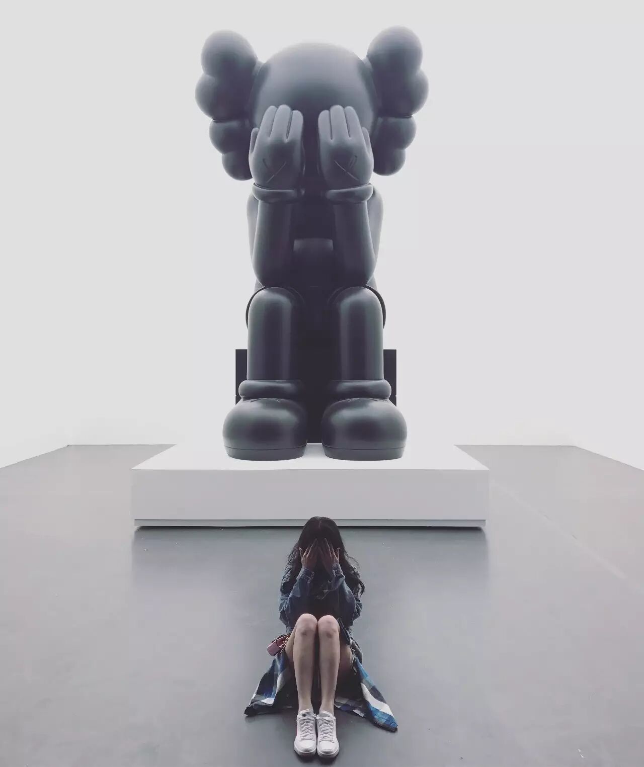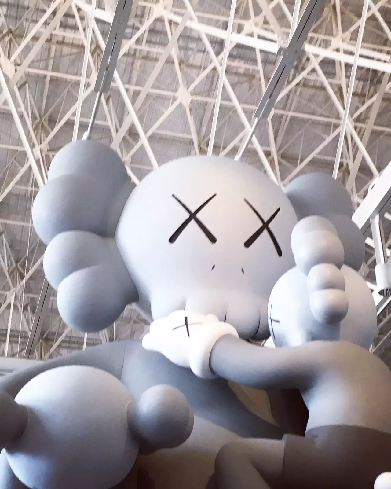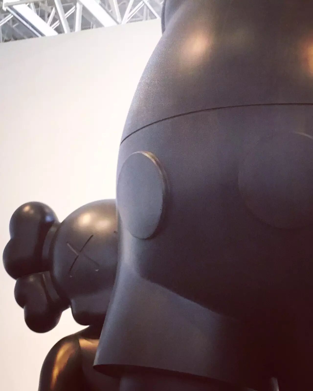 如果在人流高峰期间去观看 KAWS:始于终点,那必然不能按照正常的顺序观展!在这里,我建议女孩们,可以先去画作区好好地欣赏作品,然后再出来和雕塑合照哦~