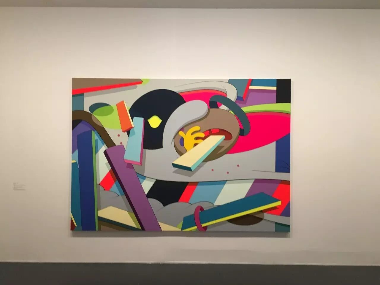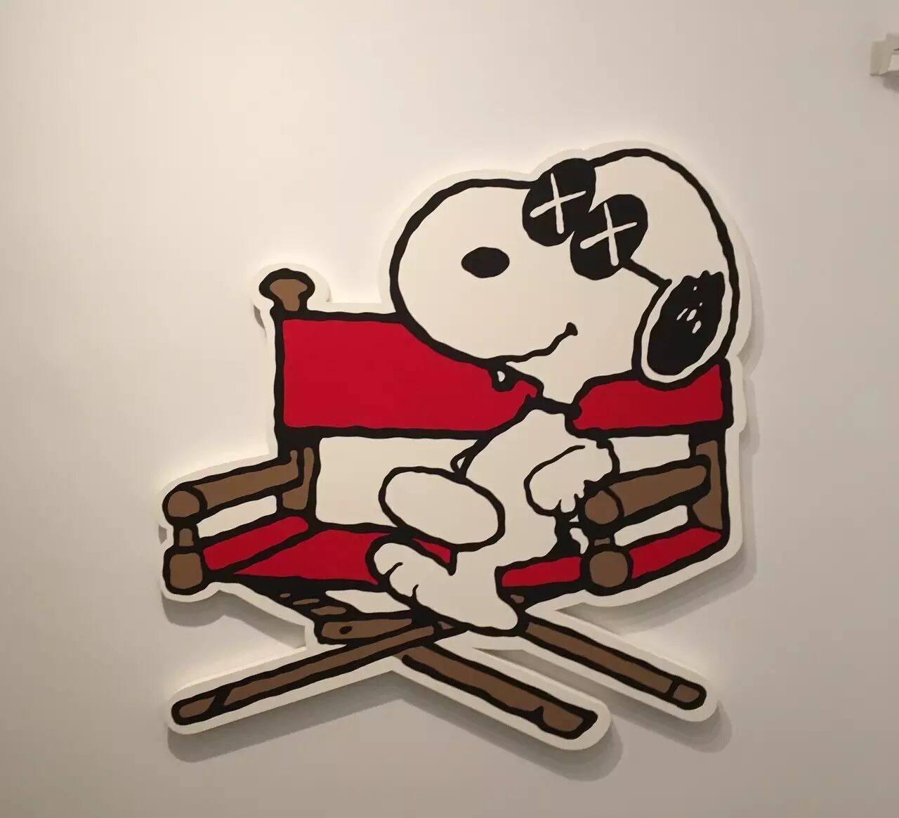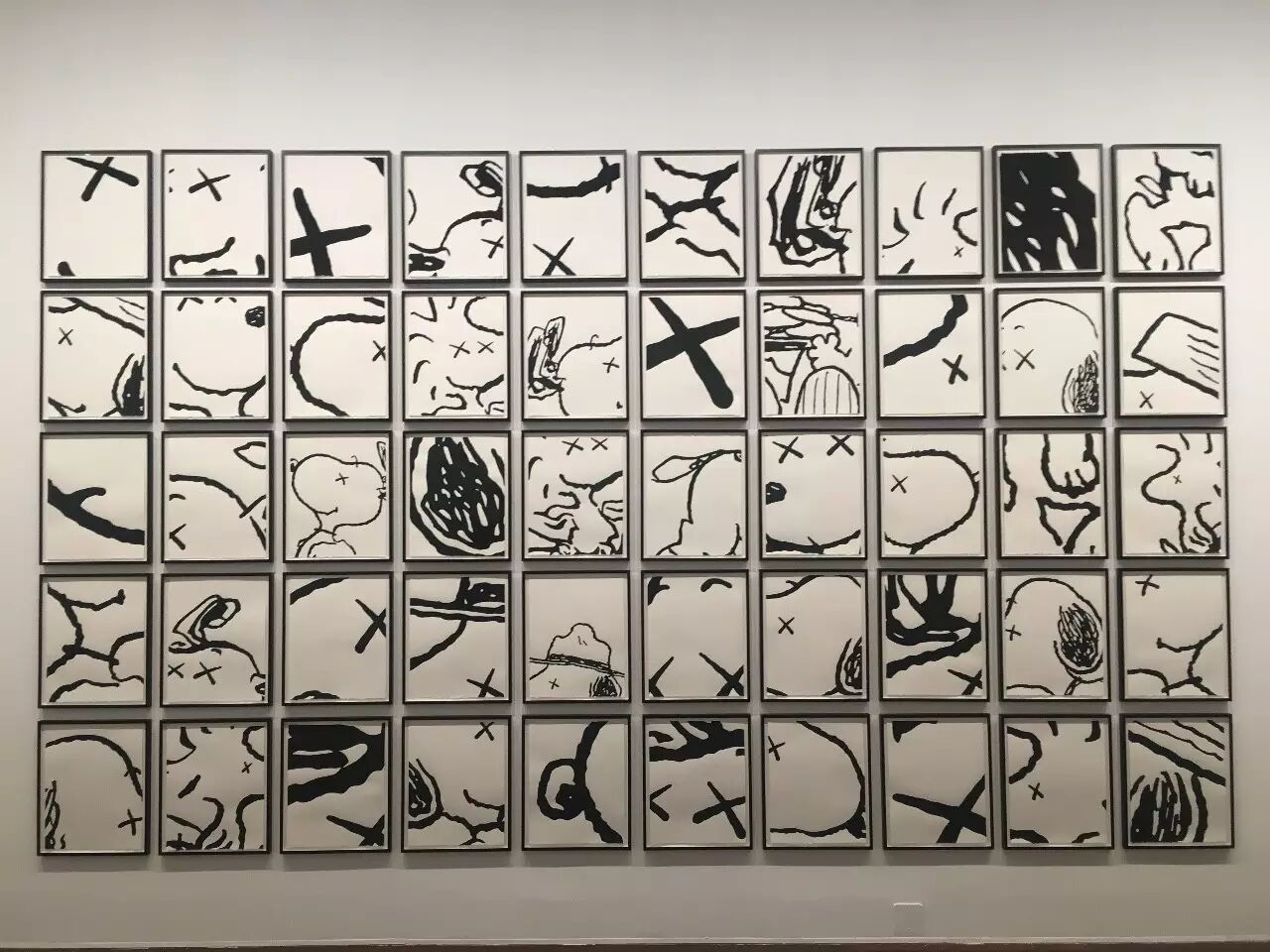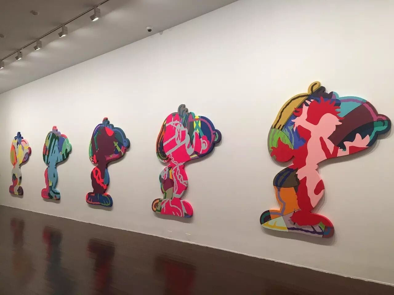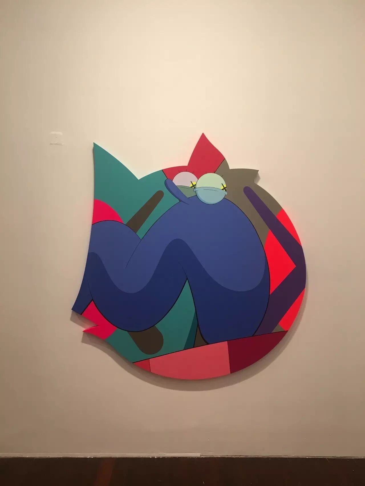 除了雕塑之外,最让我激动的,应该就是可以在展览中欣赏到KAWS近20年来的画作展示了!至今为止,KAWS的此类作品基本被分为前期以及后期。前期的作品都较为具象,基本以卡通人物为原型,一眼就能认出到底画了些什么的那种。