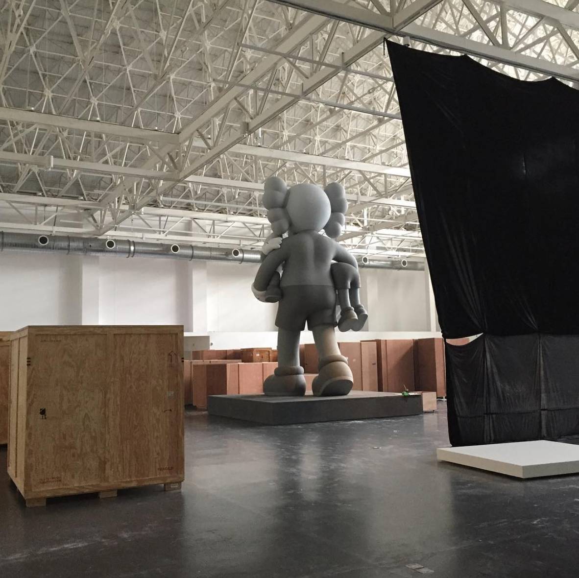 不仅如此,KAWS也是一直通过自己的Instagram在汇报不同时间段的搭建状况。
