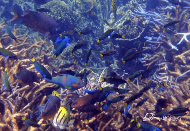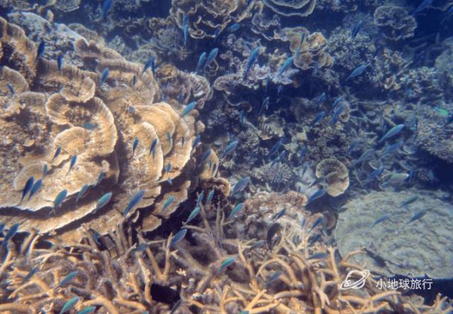 有过浮潜经验的旅行者都知道,一般都是要乘船出海浮潜的。但从岸边直接走向巨大面积的珊瑚礁,你想过吗?而这里人少到什么情况呢,偌大一片海,只遇到一个潜水的老外家庭 。