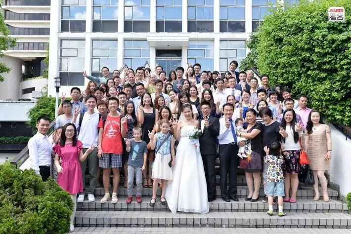 2015年6月,。香港规定,登记结婚至少要有两名证婚人。龚杨和马峥在香港有不少朋友,听闻两人的喜讯后都跑来观礼。手续办好后,大家一起在门口合了影,然后去吃了个简单的饭,就算是礼成。图为龚杨和马峥登记结婚时与朋友们合影。