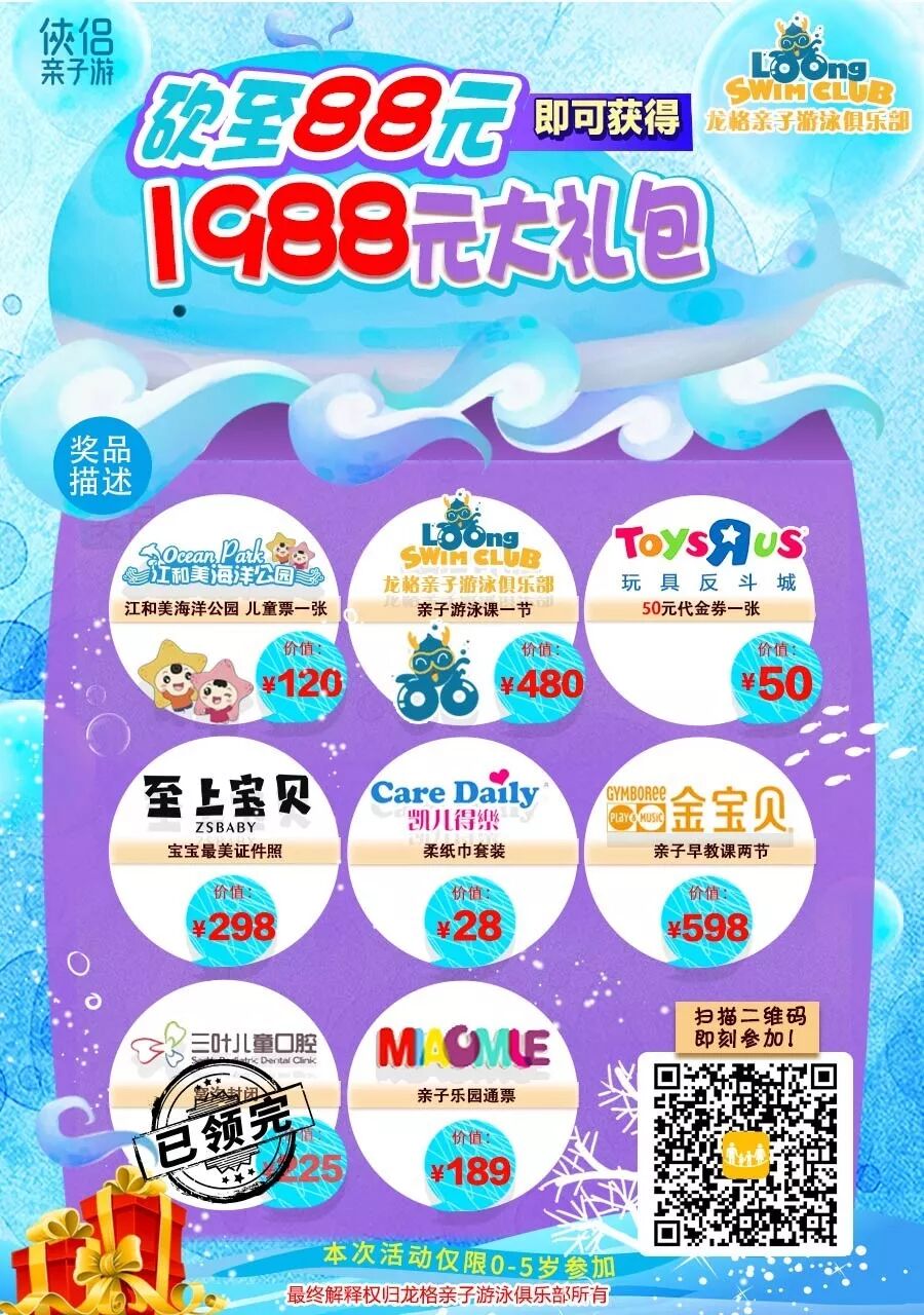 >4、江和美海洋公园 价值120元儿童票一张(仅限前 6000 名)