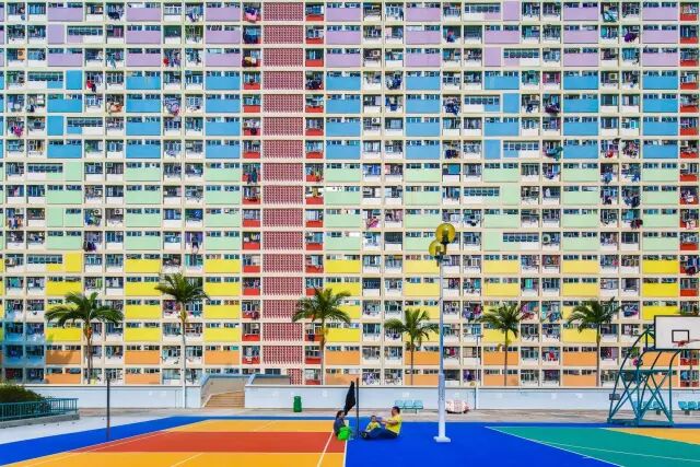 彩虹邨就在地铁彩虹站旁边。五颜六色的彩虹墙就像是童话里的建筑。每一个路过的人都会情不自禁抬头看看。而且,邨里的七条街道的名字都是以彩虹七色来开头的,如红梅路、橙花路、黄菊路、绿柳路等。