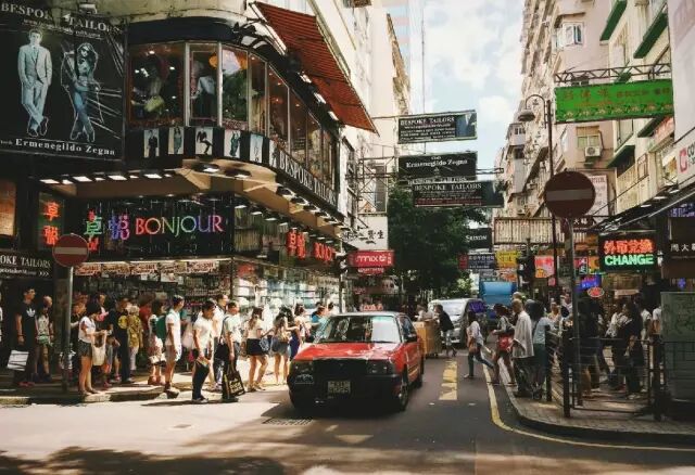 香港有着狭窄拥挤的街道,但却和它明艳的暖色调相得益彰。明黄色的斑马线在楼宇之间格外醒目。