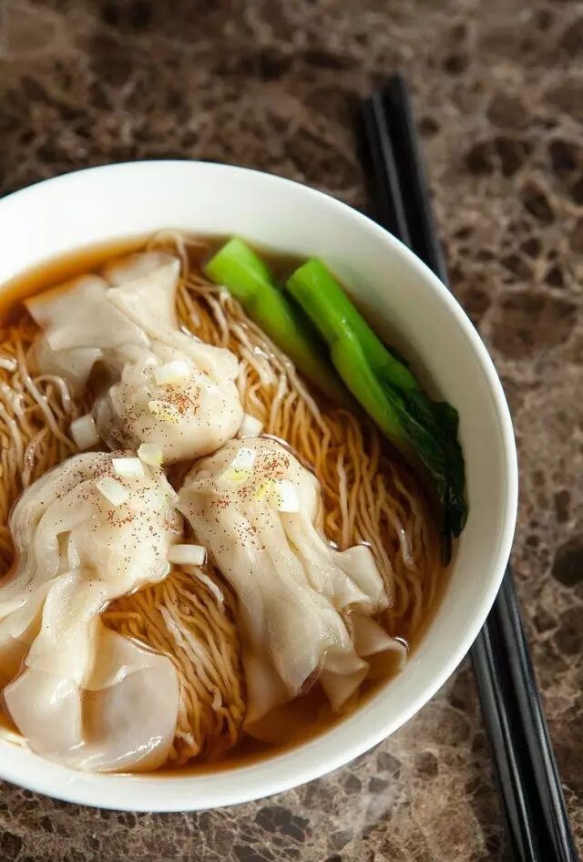 香港的云吞面就像上海的小笼包一样,不吃绝对会遗憾。云吞个个饱满实在,馅全部是完整的大个鲜虾做的。面条用鸡蛋面做成,口感筋道。汤面也十分讲究,是用猪骨、大地鱼干、虾皮熬至而成。
