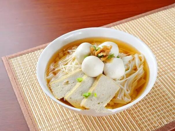 鱼蛋粉是以爽滑幼细的米粉为主料,以大地鱼干、猪骨熬汤作为汤底,再加上鱼蛋、牛丸、炸肉卷、鱼块等配料制成。米粉入口香滑,配料则各有风味。