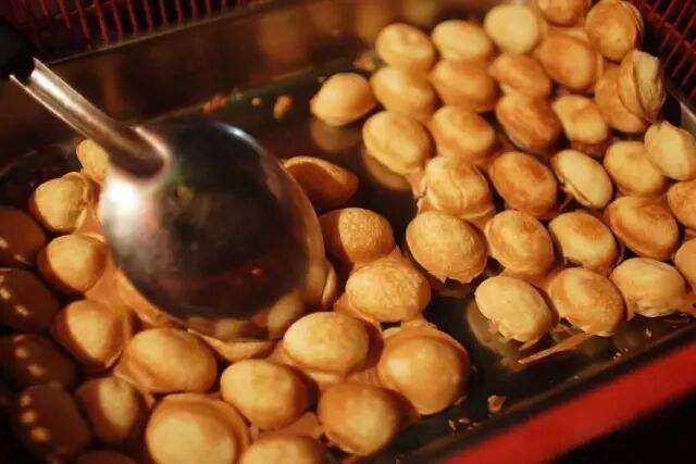鸡蛋仔是香港传统街头小食 ,但其实内地各省市街头也能看见这种小吃。它是华夫饼的一种变体。鸡蛋仔呈金黄色,有蛋糕的香甜味,加上中间是半空的,咬下时口感特别弹牙。