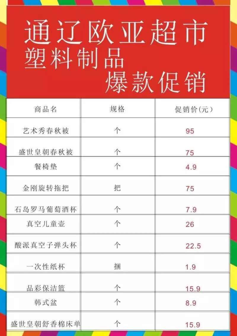 首页 | 美妆知识 | 大型塑料制品、家居、玻璃制品、儿童玩具大展销 精选爆款 促销来袭 大型塑料制品、家居、玻璃制品、儿童玩具大展销 精选爆款 促销来袭 2023-04-19 23:50:29 欧亚精选家居塑料制品大惠卖欧亚直采 质优 价优 500多品种 值得来逛 小欧为您精选爆款促销星期一至星期五爆款促销星期六至星期天爆款促销通辽欧亚购物中心生而排版,为你而美