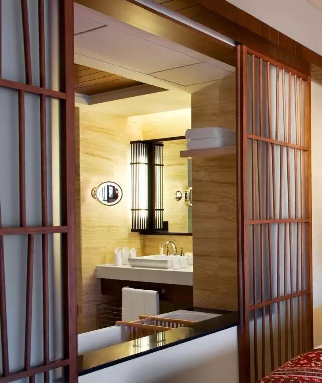客房的屏风门十分雅致,颇具民族特色,同时也隔开了起居室与浴室。每间豪华客房内均配有最先进的高科技设施,包括思科 IP 电话、三星液晶电视、Bose 娱乐系统、视频游戏等。