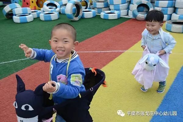 操场上,摆满了家长自制的玩具。有的是收集各种废旧材料,如易拉罐、纸盒,木棍,塑料管等,用灵巧的双手,制作出了一批成本虽低,但美观实用的玩具;有的是设计新颖、安全简便的耐用性玩具;有的集合了趣味性、实用性、可操作性于一体的玩具。