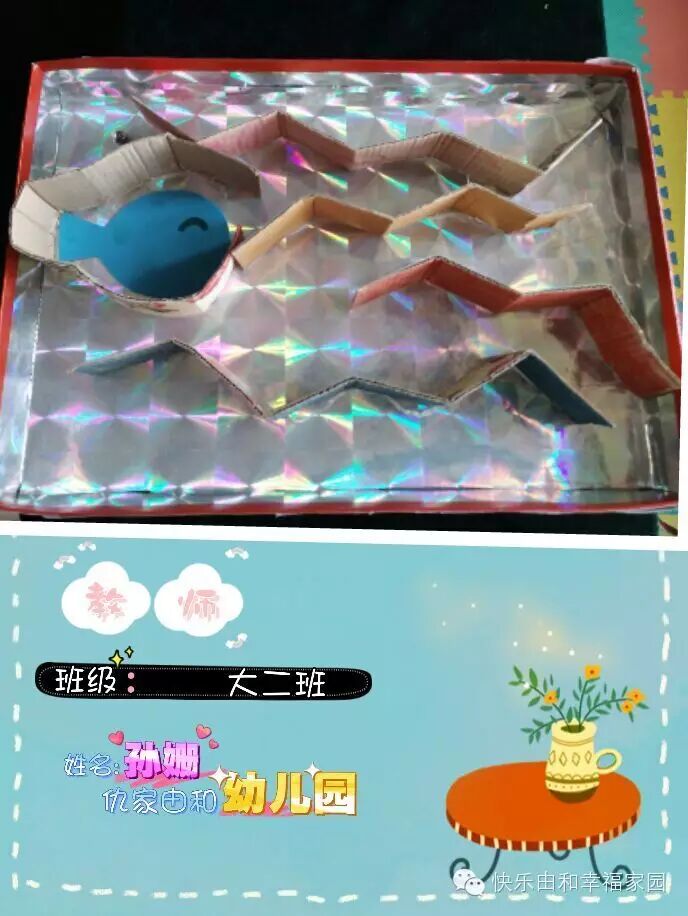 此次活动,教师和家长宝贝积极参与,可谓“八仙过海——各显神通”,大家充分利用日常生活中的废旧物品,如:纸箱、纸盒、卡纸、磁铁石、饮料瓶、吸管、包装袋等环保材料,以剪、画、贴、拼、插等多种形式制作出一件件精美的作品,这些作品不仅色彩艳丽、构思巧妙、造型新颖、安全卫生、操作简便,而且贴近幼儿生活,可用于健康、语言、社会、科学、艺术五大领域的教育活动及游戏活动,更能激发孩子们科学探究的兴趣。