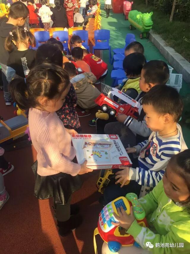玩具是伴随幼儿童年生活的亲密伴侣,是幼儿最心爱的宝贝。在他们眼中眯眯笑的娃娃、蹦蹦跳的皮球、嘟嘟开的汽车-----无不散发出奇妙的魔力,吸引他们去看看、玩玩。本月结合主题“一起玩玩具”,我们托小班年段的小朋友在10月31日这天,举办了一场“玩具分享日”的活动,以此让闲置在家里的玩具达到二次利用的效果,同时给孩子们树立节约能源,低碳生活的意识,并且在交换过程中得到交往的锻炼,享受到交换玩具带来的快乐。