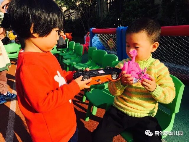 在孩子们的世界里,总是有很多漂亮、可爱的玩具,时间长了,不新鲜了或者不喜欢了,但是玩具还是很好很完整的,怎么办呢?家长朋友们就可以像我们一样引导孩子与同伴分享、交换玩具哦!