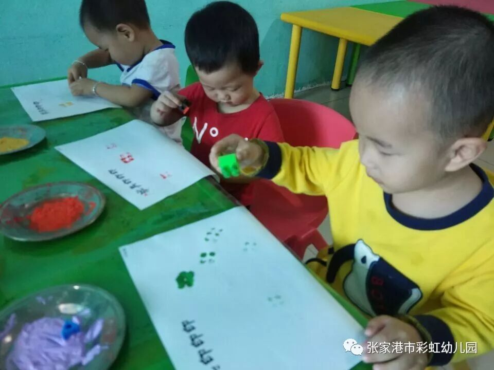 首页 | 美妆知识 | 托一班 美术《玩具印印印》 托一班 美术《玩具印印印》 2023-04-19 23:50:29 活动目标: 1.尝试用各种造型的玩具印章在纸上随意盖印,初步感受色彩的鲜艳。 2.模仿教师的动作,学习印印章的动作,提高手臂活动的力度。 3.愿意大胆地盖印,体验玩具印章在纸上留下印迹的乐趣。 老师在操作过程中,小朋友们认真看老师是怎么做的。先把玩具蘸一下颜料。在和纸亲一亲,小手按上去不能乱动。我们的玩具印章就印好了,是不是很漂亮。宝宝们自己动手操作,很认真。宝宝们的作品,好棒啊!我相信你们以后会更棒哦!宝宝们加油啊!