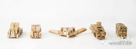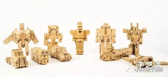 加拿大设计工作室 Bamloff 推出了一系列木头变形金刚WooBots,虽然没有重金砸出来的特效,没有目不暇给的声光影像,但在朴实之中,帅气的外观和逼真的形象也能赋予孩子们想象的空间,小朋友们能够给他们定义团队、技艺等等。