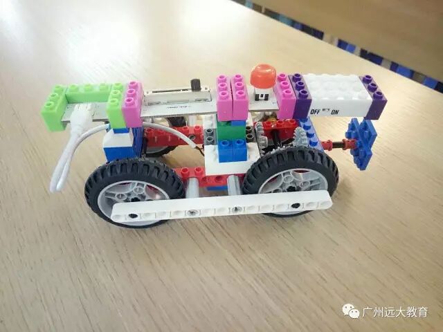 1.学生通过不同的课程主题,以任务驱动的形式搭建不同的模型,学习并了解简单的动力结构与机械原理,如:杠杆原理、齿轮驱动、齿轮分流、齿轮比应用等。