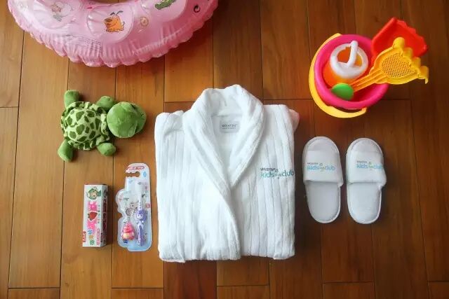 三亚威斯汀客房,为每个孩子提供儿童拖鞋和浴袍,穿上萌萌哒!