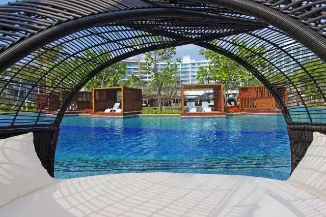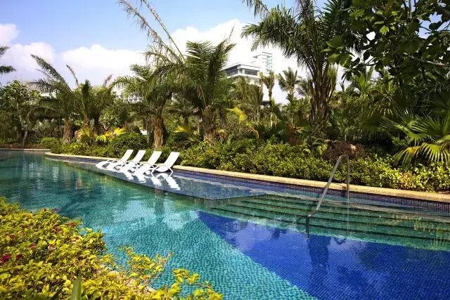 酒店12000平米的多个泳池、按摩池、水景及火焰水景池,为大人和小孩营造出纯净的完美水世界。