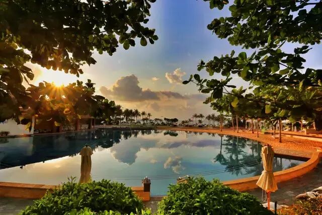 酒店坐拥海棠湾私家沙滩,幼沙白浪, 十九公里长的岸线风光旖旎,河道如网,绿洲棋布,芳草萋萋,像是一座美丽的热带花园,可以玩沙,可以戏水。大人为之欢喜,孩子为之痴迷。