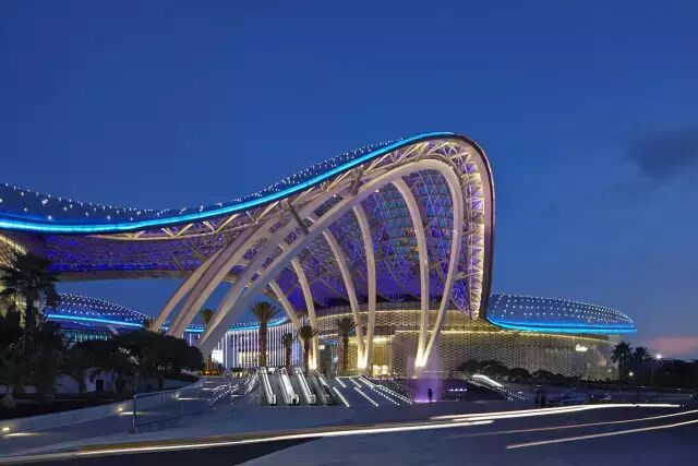 酒店主楼外观白天看上去神似北京鸟巢,夜幕降临,楼体灯光效果更是现代优雅,使得三亚海棠湾民生威斯汀度假酒店在三亚主打东南亚风格的度假酒店设计中显得独树一帜,魅力非凡。