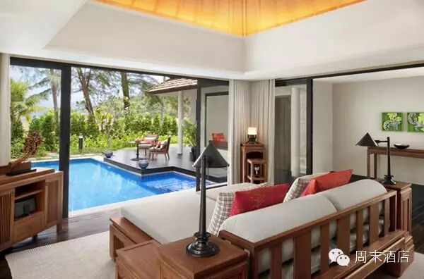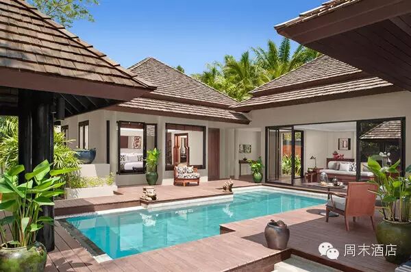 泰国最好的度假村酒店之一,坐落在攀瓦角的顶上,遍及40英亩的热带雨林。酒店享有隐蔽、安静的位置,距离普吉国际机场42公里,距离普吉水族馆320米。坐落在攀瓦角的顶上,三面环海,遍及40英亩的热带雨林。日出日落,岛屿,安达曼海和日落的绝美景色,令人惊喜!别墅坐落在海拔40-60米处的山脊中,可以俯视安达曼海的壮丽景色。所有的泳池别墅都可以观赏到海景,其中一些泳池别墅甚至提供了不间隔的360度海景。建筑融合了当代热带的风景,室内以海边为主题,非常独特,简单而朴实,私密性很好。