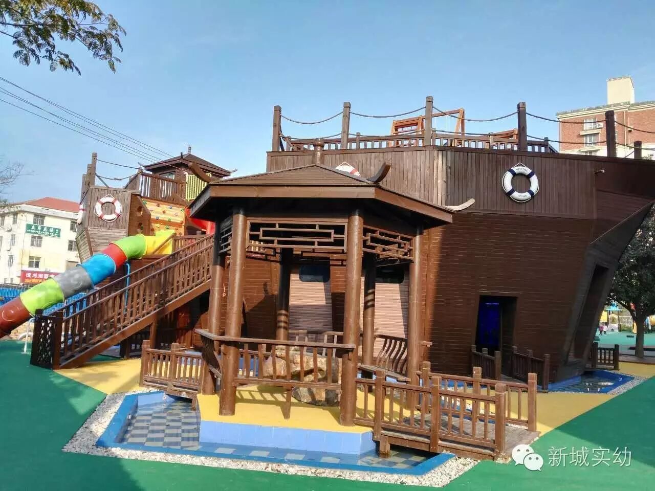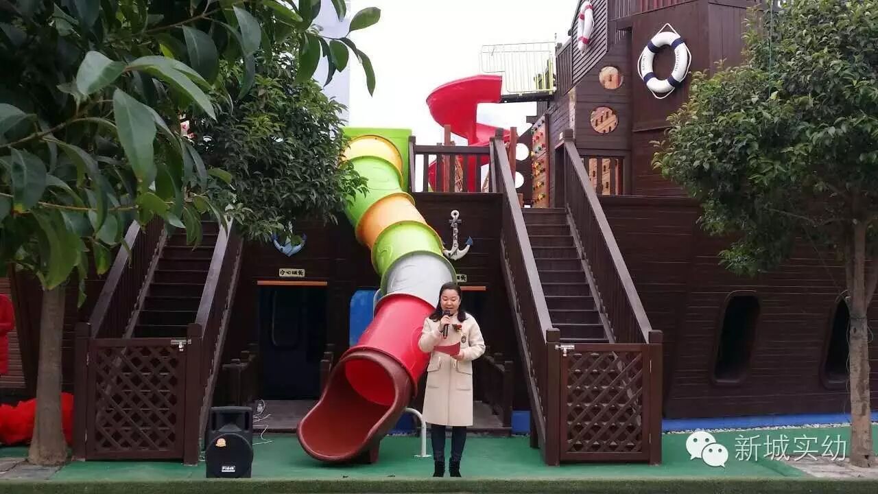 海 盗 船 为了丰富幼儿生活,我园新建了大型综合玩具“海盗船”,2016年11月9日(农历十月初十)上午10点10分,园领导及家长代表进行了“海盗船”正式使用的剪彩仪式。 园长妈妈讲话 家长代表发言 要玩海盗船喽! 本玩具是将多项儿童运动、游戏和创新功能于一体的大型综合玩具。它可以从多个方位爬上中心平台,再沿着多个滑梯、钻筒或滑竿顺流而下,让孩子全面感受、爬、滑、荡的乐趣。更重要的是让幼儿体验探索、冒险、创造、思考、挑战的刺激,锻炼协调、平衡、力量、耐力等素质,培养敢于尝试,敢于探险的品质。