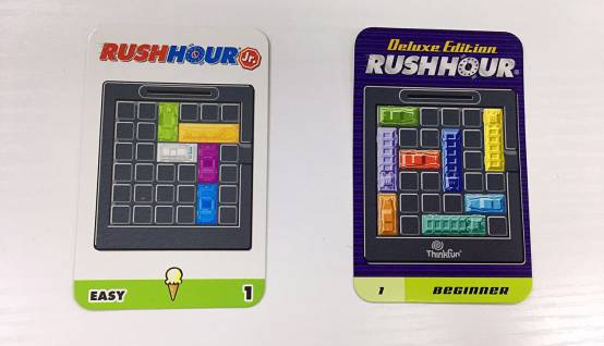 规则比较简单,按照每一关的挑战卡片把相应颜色的汽车在网格放好,然后想办法移动其他车子,让白色的冰淇淋车顺利从出口开出去就算挑战成功。移动过程中不能拿起车子,要像现实生活中一样,只能在指定的轨道上移动车子。