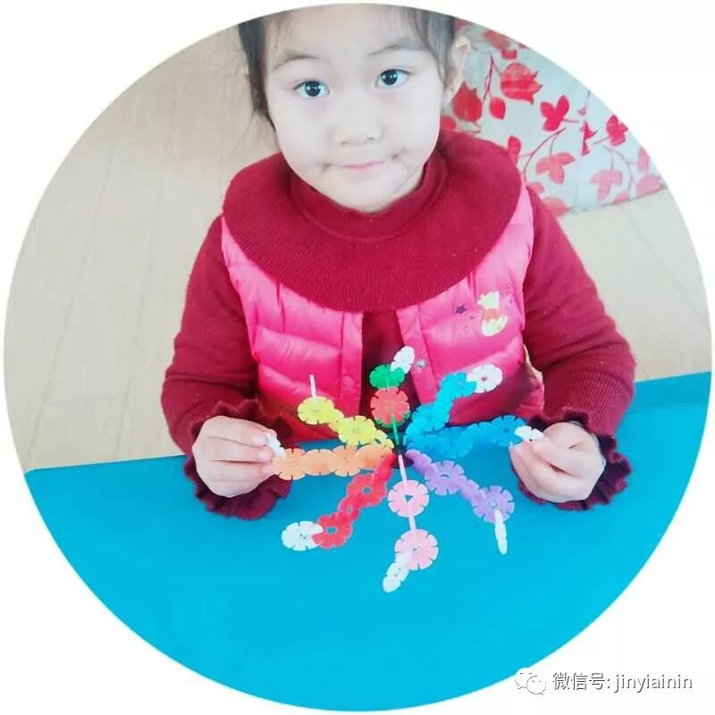 玩具是幼儿游戏的工具,课堂结束后,孩子们选择了雪花片的拼装,雪花片是一种发挥想象力的拼塑玩具。