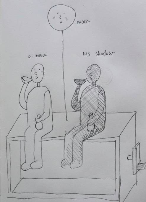 月亮看着月下的两人醉醺醺的样子,也醉了,