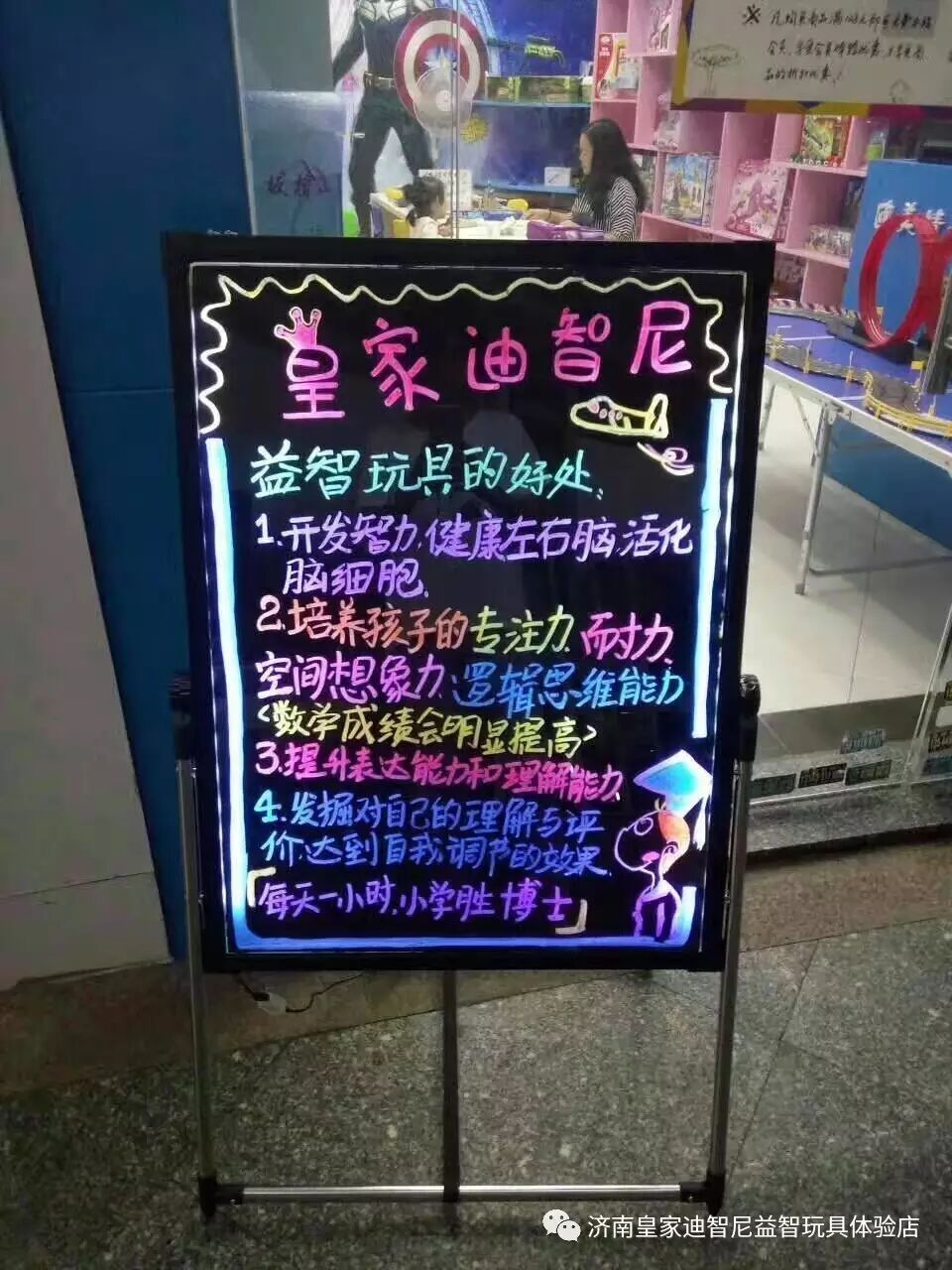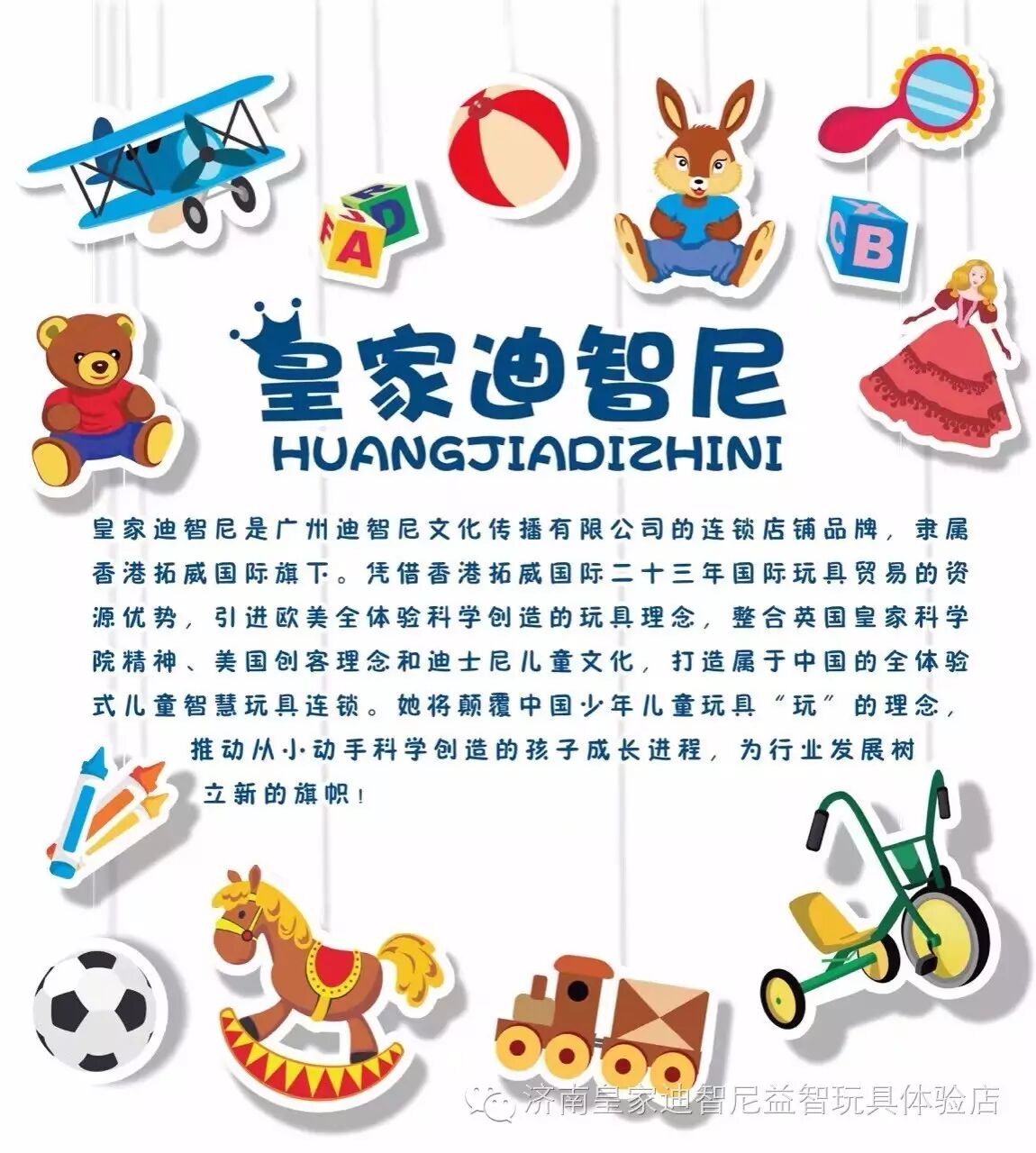 济南皇家迪智尼益智玩具体验店开业8个月来,始终遵循创新体验,服务至上为宗旨,不断更换体验产品,每日玩具消毒,给孩子们营造更加舒适、干净、整洁的创玩空间,让家长们放心,宝贝玩的开心,主要服务6个月-8岁儿童群体,至今已接待6500多人次,所售产品均享受期限质保及维修,免费送货上门。现已开通微信群,广大客户可随时线上下单,市区内免费配送!