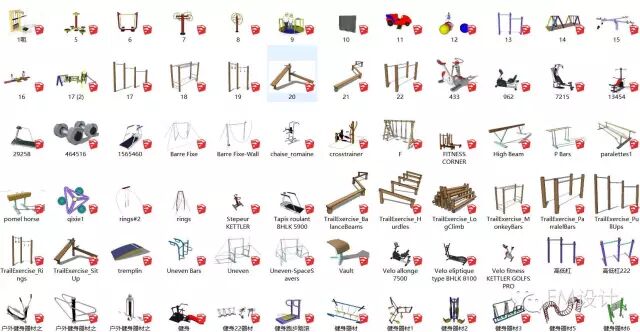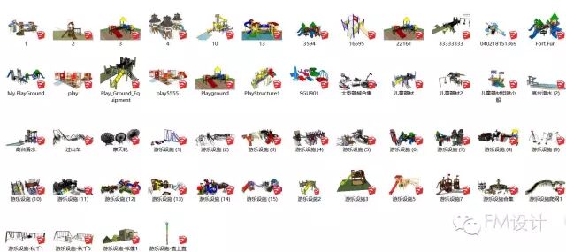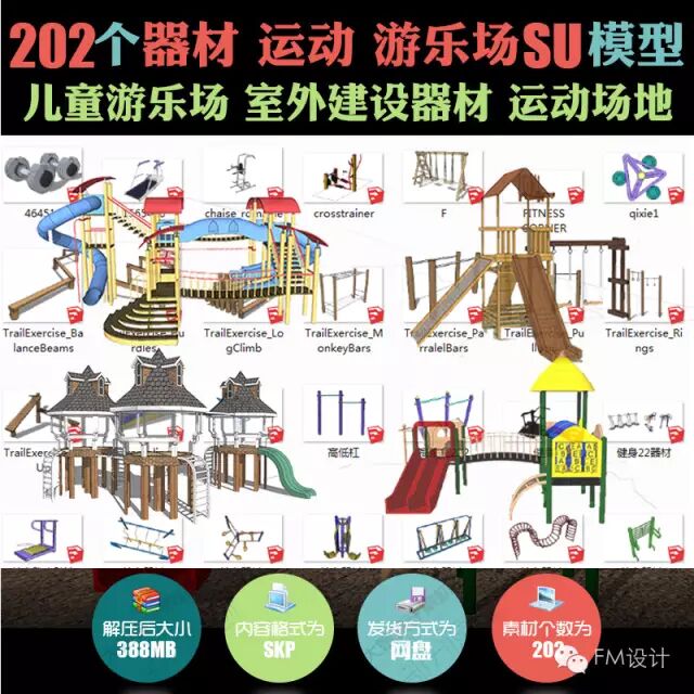 大概也就这么多,【SU组件模型礼包】儿童游乐设施52个+室外健身器材93个+运动场地57个可以自己下载慢慢查看