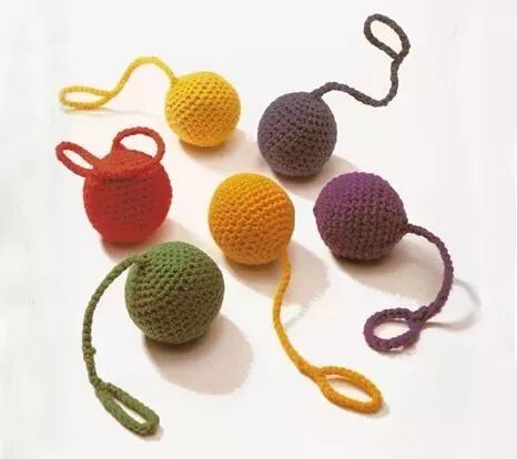 这是很著名的现代幼儿园创始人福禄贝尔为婴儿设计的第一个玩具(Froebel Gifts: Gabe 1)。手巧的话,也可以用棉线自己做。