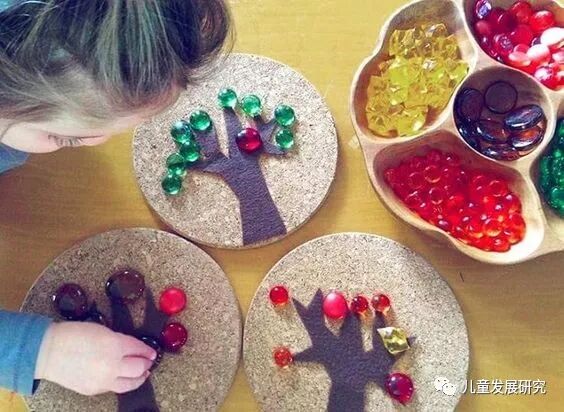 还不会握笔的孩子,用多种颜色的石子作画是极好的精细运动和手眼协调锻炼,还能学习对色彩的认知。