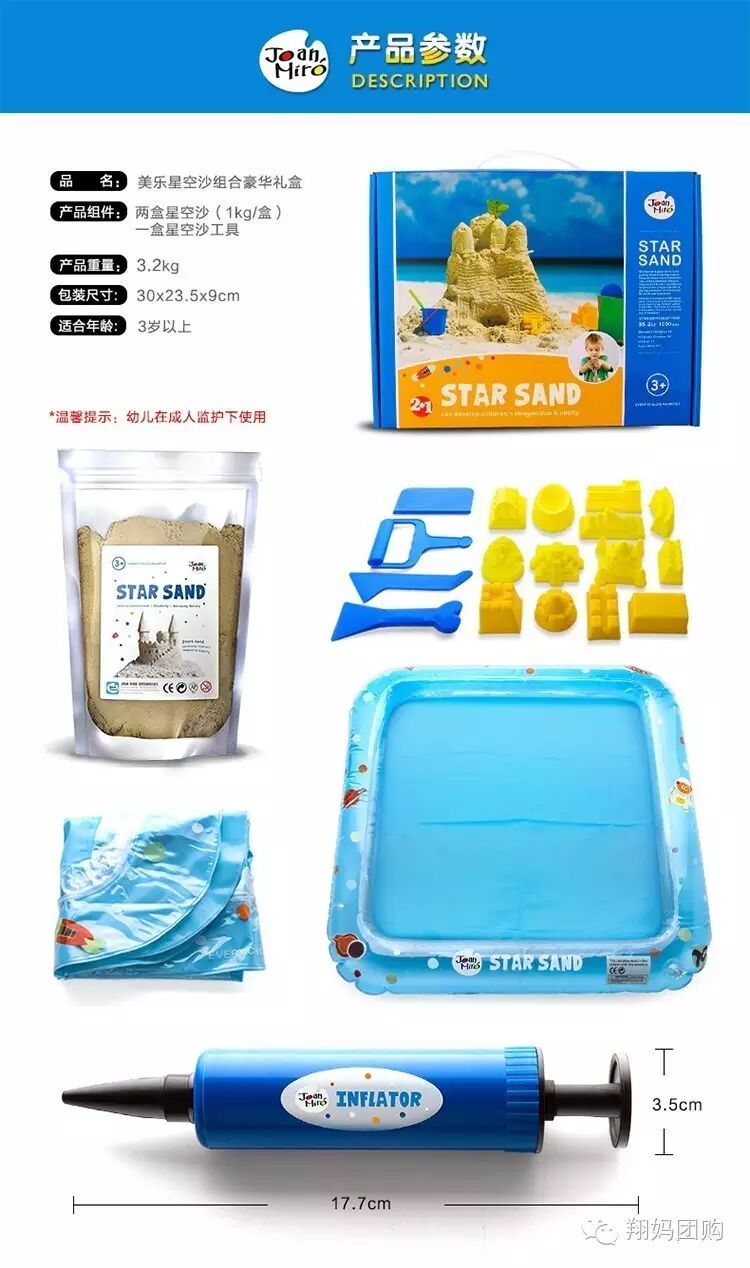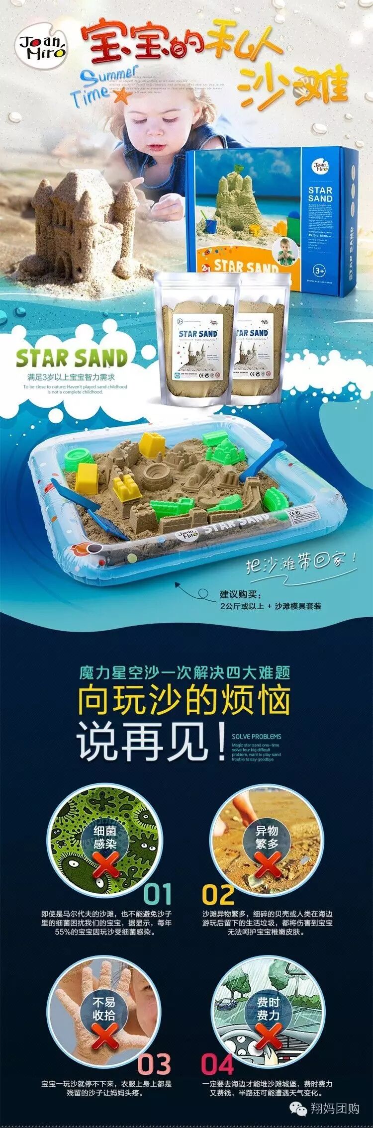 ”玩沙“是每个宝宝的天性,这不仅仅能带给宝宝不一样的触感,触摸真实的大自然,不过,现在的孩子毕竟不同以前的孩子,很多家长对自家的小宝贝呵护有加,面对“玩沙”,会生出许多健康方面的担忧:玩沙子脏不脏,会不会感染细菌?沙子揉进眼睛里怎么办?不用担心,美乐星空沙帮你带个沙滩回家,选用热带天然海沙,纯天然海沙原色,无任何添加,从筛选,蒸馏以及后续一系列工艺都是在无菌车间中操作,柔软而不松散,神奇的流动性沙粒,带给宝宝最真是的自然体验,套装内含有4斤星空沙+17种模型+充气沙盘,团128元包邮除偏,带给宝宝一个沙滩王国,【拍下留言备注:翔妈团,改价后付款】