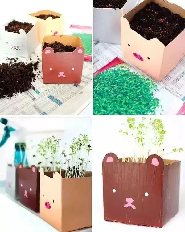 回归原始创意,牛奶盒直接当作花盆,放在室外也很不错
