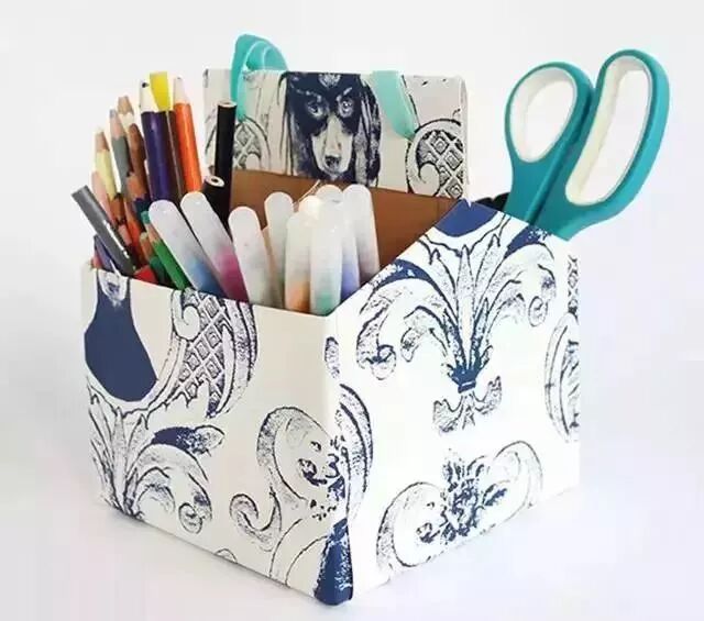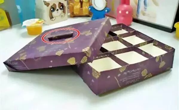(下面图片中蓝色的纸)家里没有用衬衣盒的纸板也可以的`~根据盒子的大小在纸上画好尺寸,然后留出盒子高度的1/3的宽度做盖檐,剪好粘贴好也用相同的包装纸包好~