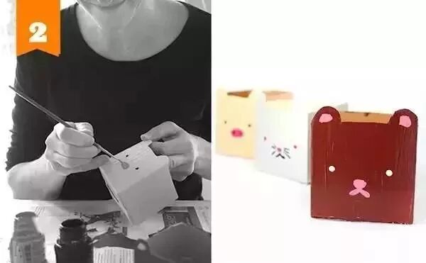 将牛奶盒裁剪出形状,刷上丙烯颜料