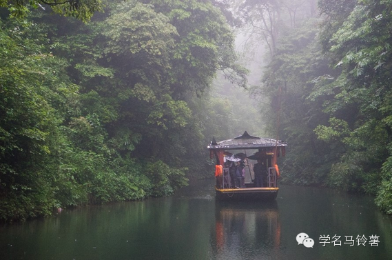 虽然看不清,但这一番美景,这一份感觉却深深地印在了我的脑海里,直到此时被重现。其实,没我那份感觉的人看到此番美景可能也没有我那份心境。毕竟湖不大,也不深,船夫和小雨搅得湖面波光粼粼的,所以也算不上清澈见地,更不能反射出两旁绿油油的石壁和被浓雾隐去的山峰。顶多算是别有一番风致罢了,但于我,这一番风景要比浣沙的西湖还要美一万倍,一万倍!正当我陶醉于此番风景心情的时候,万万没想到,只是不多时后,我便会被另一番风景,另一份感觉深深地震撼——