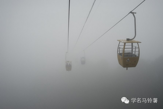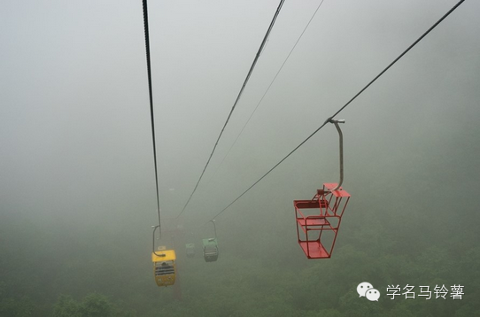 那是我们坐上缆车见到的,缆车跨过一座山峰,潜过两座山谷,游走于高空之上,雾霭之间。雾淡处,隐现着翠林、山花,或是突兀的一道山脊,雾浓处,便只剩白茫茫的一片,紧邻着的山峰也只剩下轮廓,前后的缆车也只有两三辆隐隐绰绰。稀少的游人,注定来来回回的缆车都是空荡荡的晃着。这时你所见都是白色雾气,所闻都是清甜的水汽,不会有任何变化,让你辨不清方向,看不见重点,只能任由着缆车牵引着,在两条孤独的线上飘着,若是这时候偶尔冒出的一份山红和翠绿都会让人激动万分。所以有时候身处于高空,。可当你下来时,便又会怀念在那白色仙境中短暂的美好,如一般。